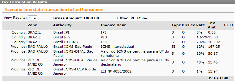 All the authorities in the examples above are audited, but there are some special considerations for IVA and ICMS (Ship To). Rates are returned in Audit for these authorities, and taxable basis and tax amount are zero: