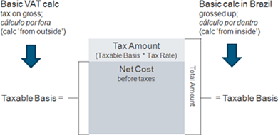 This illustration compares basic VAT calculations with Brazil tax calculations: