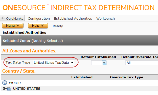 - Zone: Set establishment for all authorities within a zone. For United States Tax Data, zone-level establishment is by state, and for International Tax Data, zone-level establishment is by country.