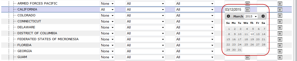 - Select March 12, 2015 from the Start Date date-picker for California.