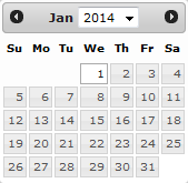 To use the Date tool, select a date in the pop-up window. The window closes automatically and populates the date field you were using. Use the arrow buttons to move forward or backward a month or a year.