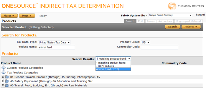 When you click the Parent Product Find icon on the Edit Products page, this window opens: