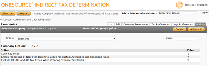 - Select an option from the Company Options list.