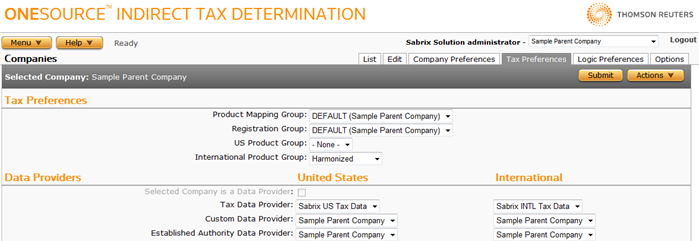 The information shown on the Tax Preferences Data Providers section depends on whether the company is configured as a Tax Data Provider. Before you set or change values in this section, use the Tax Preferences field reference table below to understand required and optional data.