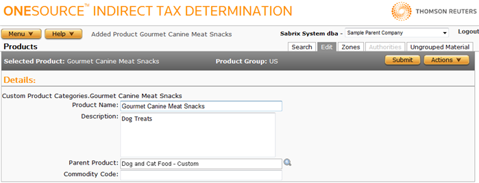 Menu > Tax Data > Products > Edit