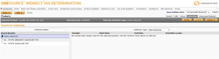 Menu > Tax Data > Products > Authorities
