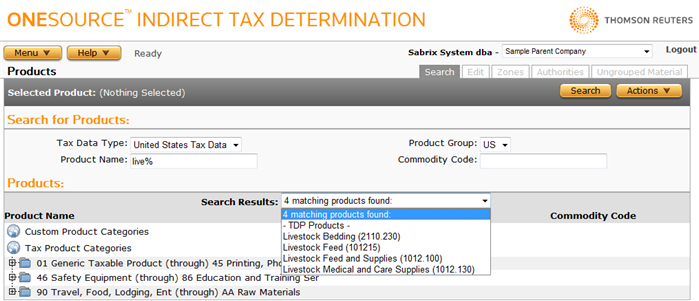 Menu > Tax Data > Products > Search