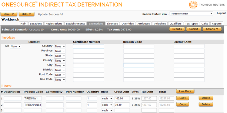 Use this page to enter exemption data for different effective tax levels in a transaction. You can exempt all transactions, or limit their application based on amounts, certificate numbers, or exempt reasons, on both the invoice or line level.