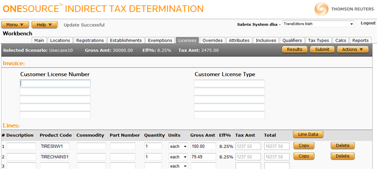 Use this page to specify customer licenses to apply to a scenario. Licenses can result in specific tax treatment based on rule selection.