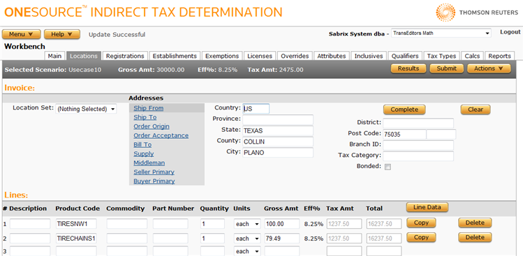 A variety of locations can be involved in a transaction. These impact where and how the transaction is taxed. Use this page to specify location sets or individual locations for the entire invoice or its individual lines. Locations set at the line level always override those found at the invoice level.