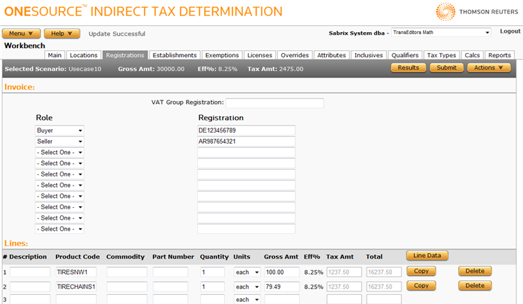 Use this page to specify registration numbers for the buyer, middleman, or seller to be used when calculating this transaction. You can enter multiple registrations for each role, including different registrations at the invoice and line levels. If no registrations are entered on this page, the system will use registrations already associated with the relevant authorities in the system.